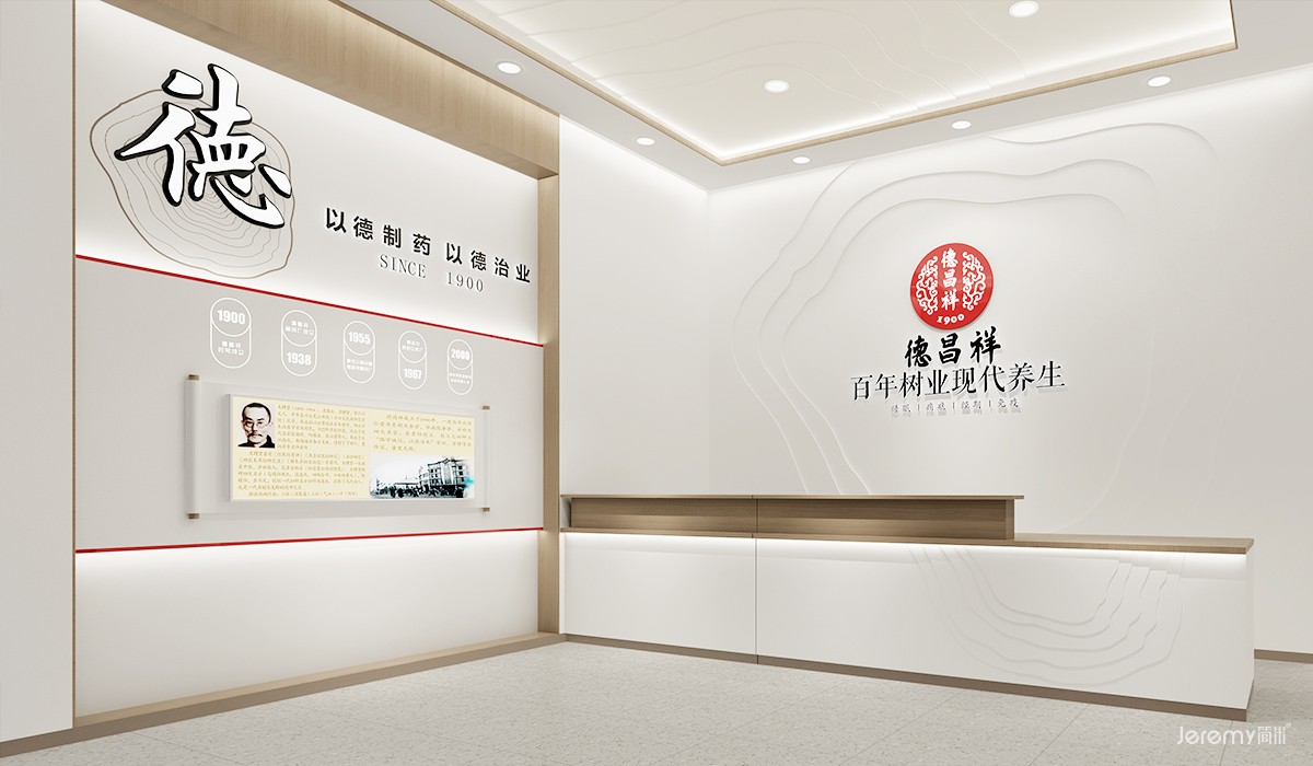 设计思路上以:“疗养健康服务”现代养生行业概念为设计核心。通过对德昌祥历史文化的继承,体现德昌祥品牌以德制药治业,以德的企业核心价值观,提炼德昌祥品牌元素运用使之生活化、品味化、艺术化、时尚化。